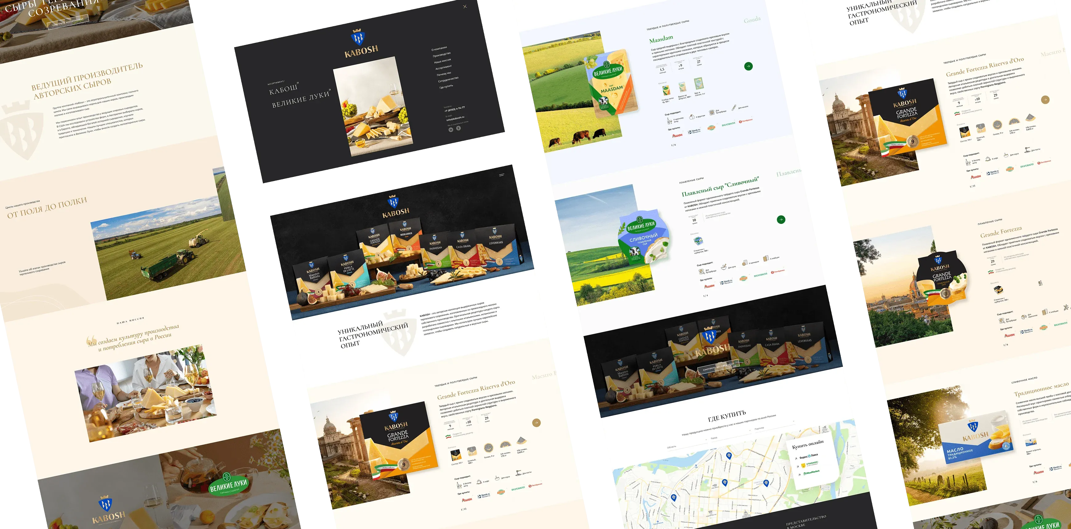 2. Несоответствие образа и продукта. Старые сайты не отражали единой концепции, к которой стремился клиент — они выглядели несовременно и просто, что абсолютно не соответствовало премиальному качеству и позиционированию марки сыров «Кабош».